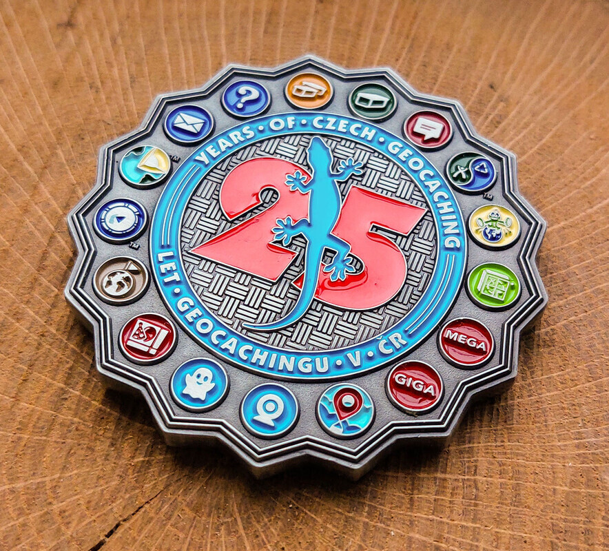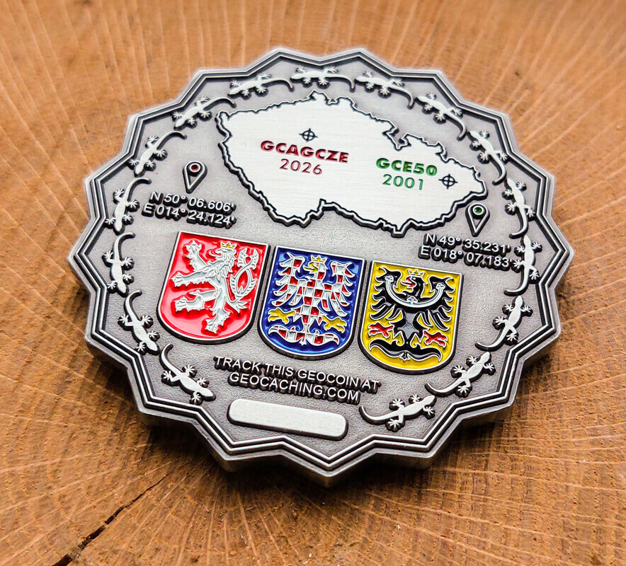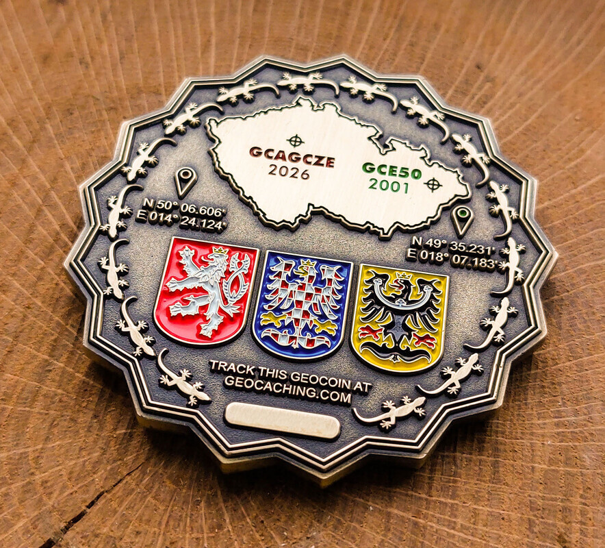 Geocoin vydaný v roce 2024 k příležitosti konání megaeventu na Hvězdárně a planetáriu v Českých Budějovicích s observatoří na Kleti.